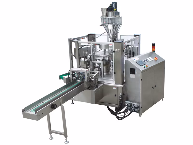 Riempitrice rotativa e sigillatrice confezionatrice per buste prefabbricate, confezionatrice DOYPACK, modello AP-8BT